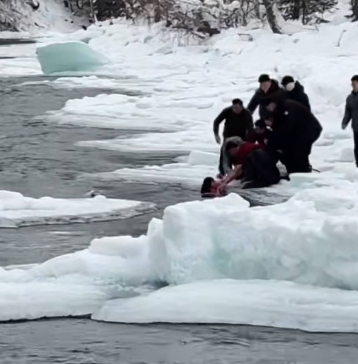 2月10日,新疆喀纳斯景区,一对母女掉入冰河,险被冲走,最后被游客合力救上了岸。网传视频中,母女落河后,母亲被冲到了对岸,小女孩被水流带走了一段距离,最后漂到岸边。岸上的游客脱下衣服,让小女孩拉住,众人合力将小女孩拽上岸。