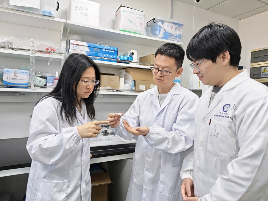 中国科学院脑科学与智能技术卓越创新中心李雪(左) 赵郑拓(中) 马天宇(右)
